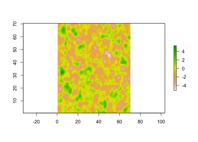 We will illustrate by adding a cloud cover to the example raster. First we look at the example raster